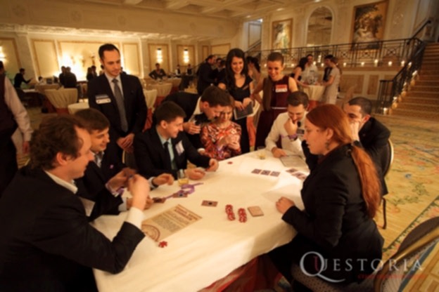 “Секретные материалы” - одна из самых популярных квесторий для корпоративов. Она уникальна тем, что в нее можно играть Pin-Up в 150 человек! Скажем честно, она нам самим очень нравится: в ярко освещённом зале играет музыка, роскошные кавалеры в смокингах целуют ручки дамам в вечерних туалетах, азартные гости не отходят от игровых столов, ну и, конечно, вино и буфет… Сегодня мы решили на ее примере приоткрыть завесу тайны и рассказать, как мы готовим для вас игры.